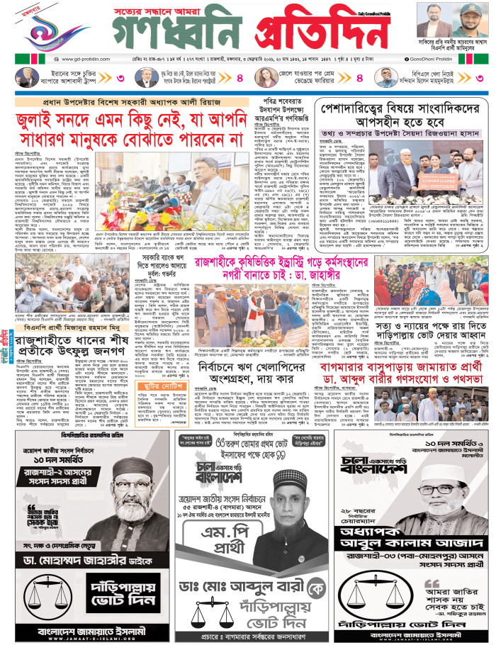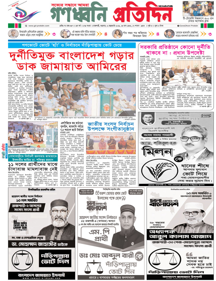 মঙ্গলবার, ০৩ ফেব্রুয়ারী ২০২৬